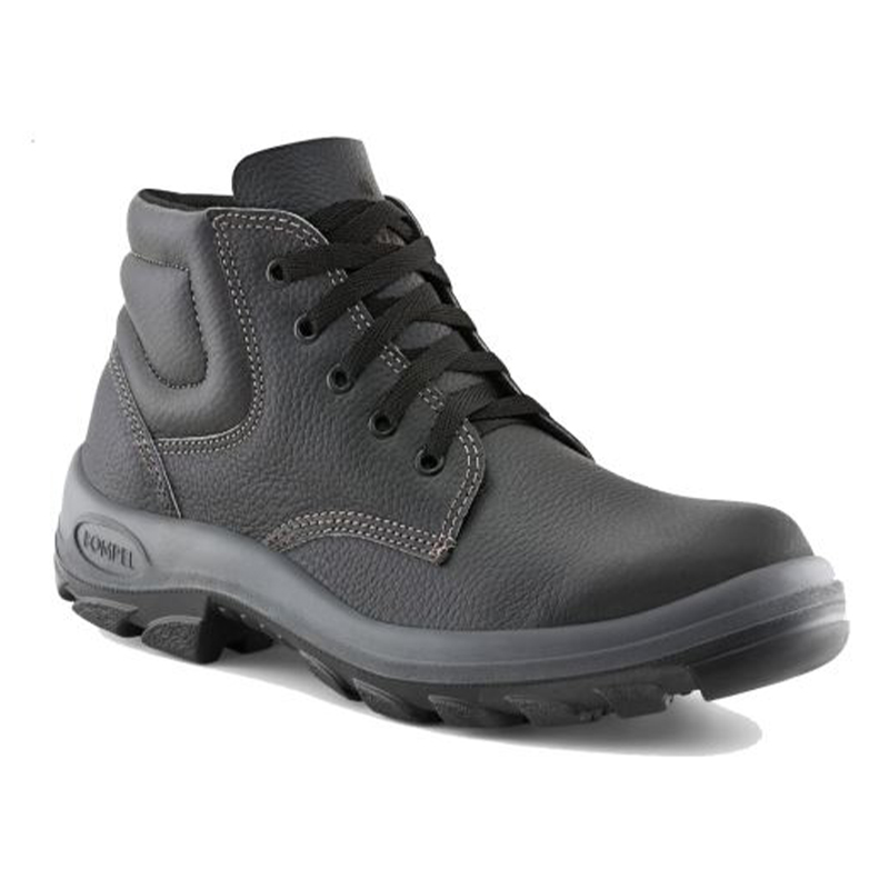 Botín de seguridad, confeccionado en cuero flor negro puntera composite, caña acolchada, suela doble densidad.